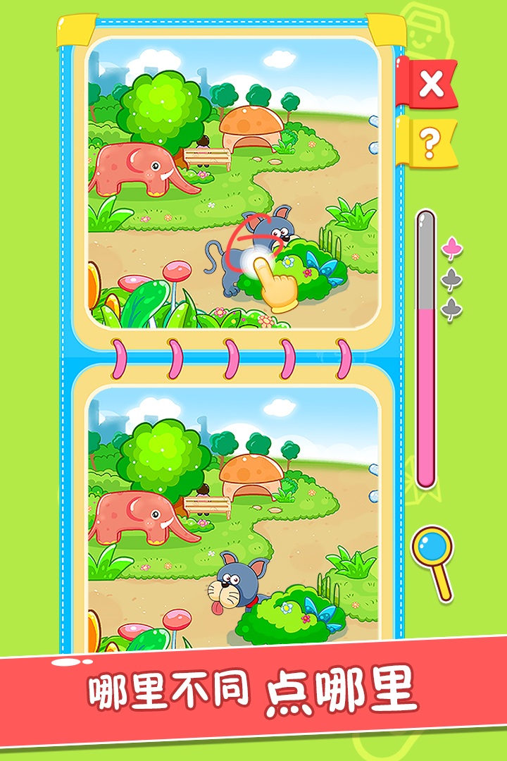 ,游戏以寻找不同之处为主题 ,玩找玩家可以无需支付任何费用尽情畅玩。宝宝让宝宝在玩乐中学习,玩找
